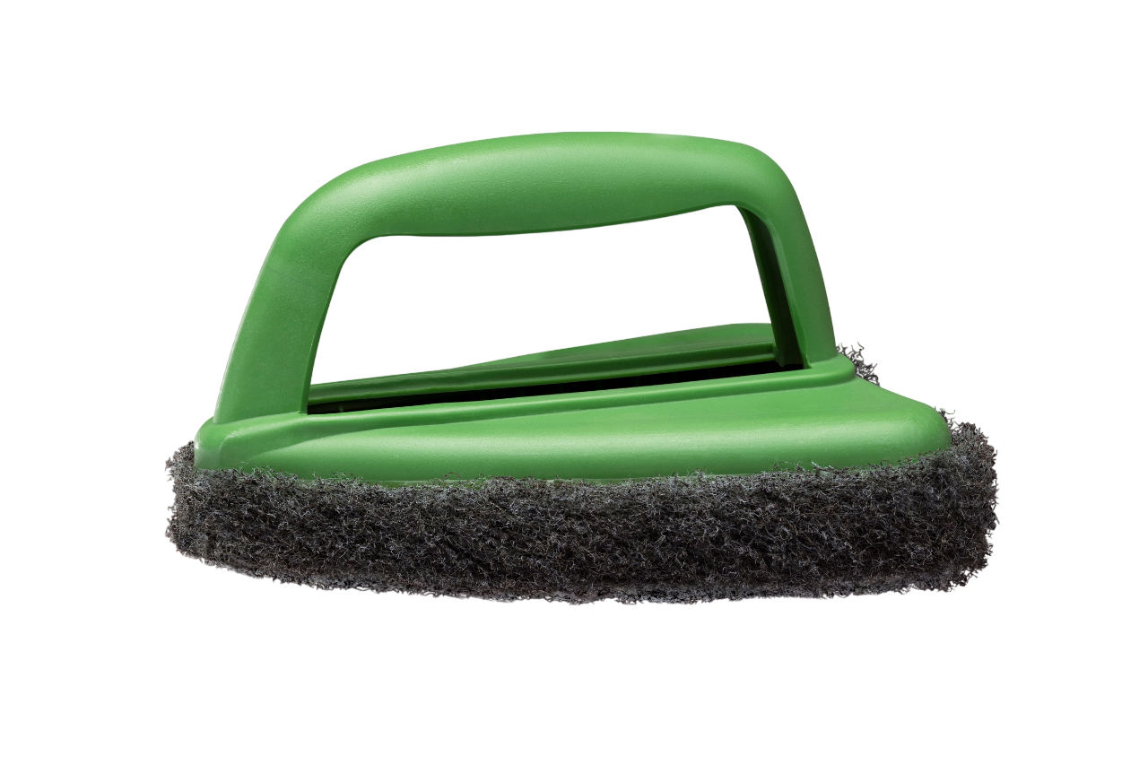 High-Density Abrasive Pad: Equipped with a thick, premium scouring pad that is engineered to cut through grease, oil, and dried food particles on various surfaces.
